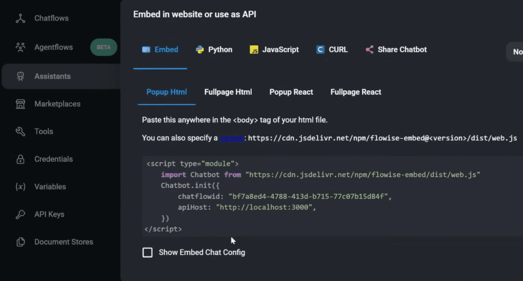 Med Flowise kan du bygge en Kunde Support Agent, som du bl.a. kan sætte som bot højre hjørne på jeres websidens.